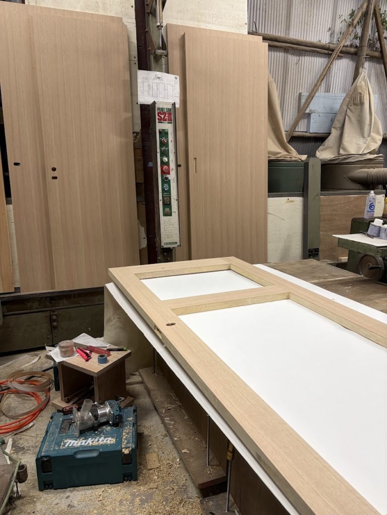 小田原市のリフォーム現場に収める建具を製作している風景です。合計5本の建具を納めます。